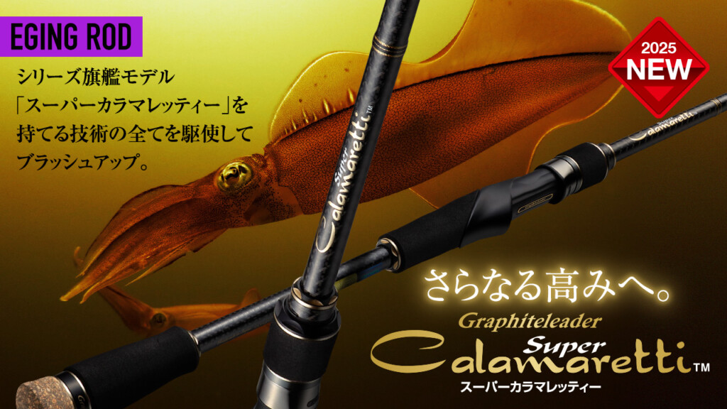 近年のスタイルや釣法に合わせるため、素材や技術などが見直された「25 スーパーカラマレッティー」。気になる方は発売時期にぜひお近くのショップへお問い合わせを。
