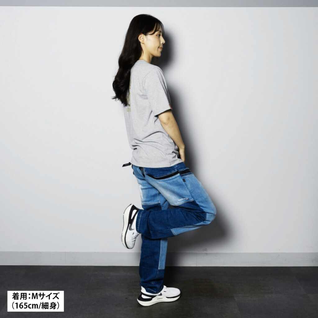 股下ガゼットで、突っ張り感やゴロつきが軽減して着用可能。ボディ生地は“Ezストレッチデニムパンツ”と同様の生地を使用。コットンのような柔らかな肌触りを持ちつつ、ストレッチ性のある生地は、ストレスフリーの着用感を実現。