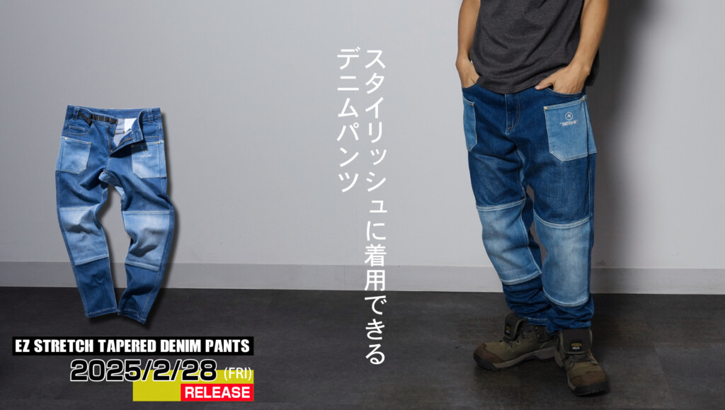SWITCH-ON公式「ez ストレッチ テイパード デニム パンツ」詳細ページはこちら