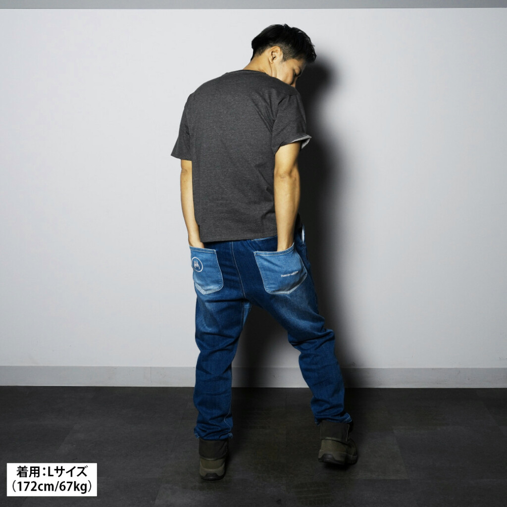| コットン94%/ポリエステル4%/ポリウレタン2% | S/M/L/XL(ユニセックス) | indigo denim(インディゴデニム) | ¥14,300(税込) |