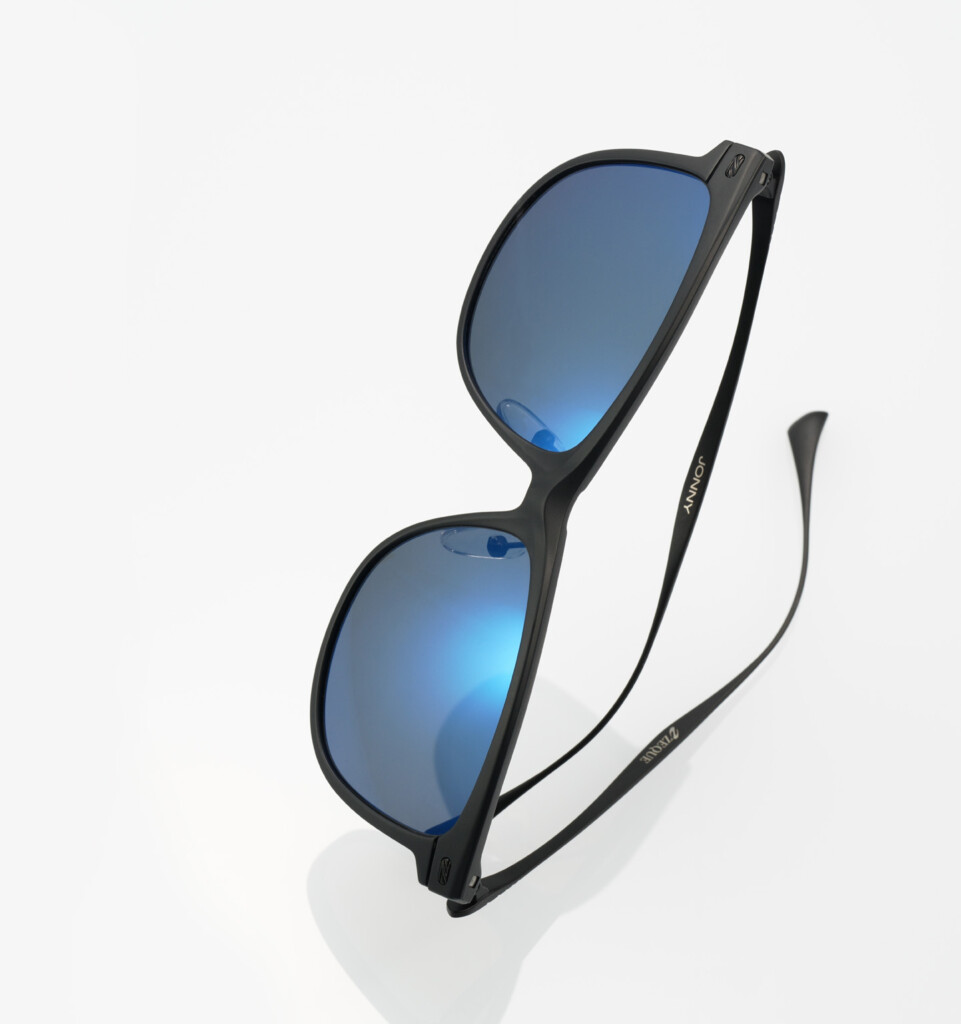 4カーブレンズ採用のフラットなフレームながら、多面にエッジを効かせて立体感を演出。ファッション性を高めると共に視界の広さを確保。