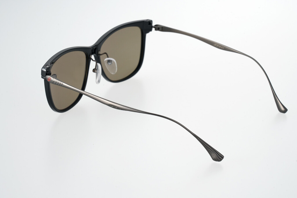 また、軽量なフロントとの相性を考慮して採用されたβチタンテンプルは、バネ感のある軽やかな掛け心地が特長的。調整範囲の広い可動式チタン製クリングスパーツで、広い視界の大きなレンズでもまつ毛や頬への接触を防止、ストレスなく掛けられるという点もポイント高し。