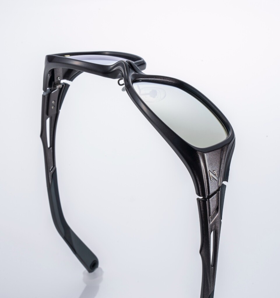 フラットな視界で違和感が少ない4カーブレンズを、立体的でスポーティーなデザインに。パーツごとに耐久性や掛け心地を吟味し、複数の樹脂素材を組み合わせて設計。遮光性を高めるサイドフレーム、柔軟なβチタン製バネヒンジなど必要な機能はもれなく搭載。調整範囲の広いクリングスや金属芯が内蔵されたモダンで、顔に合わせた最適なフィッティングを。 4カーブレンズ採用モデルは、度付き偏光サングラスのオーダーメイドにも最適。