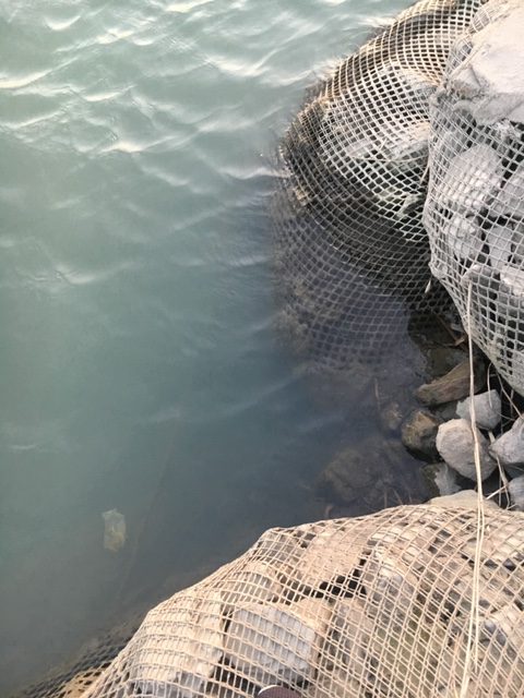 過去の冬の油ケ淵でも濁りが入った時の土のうエリアでの釣果はよく、土のうが張りだしている場所などにフィーディングに入ってくるという感じです。