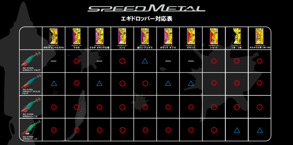 こちらのエギドロッパー対応表もぜひ参考にしてみてくださいね。