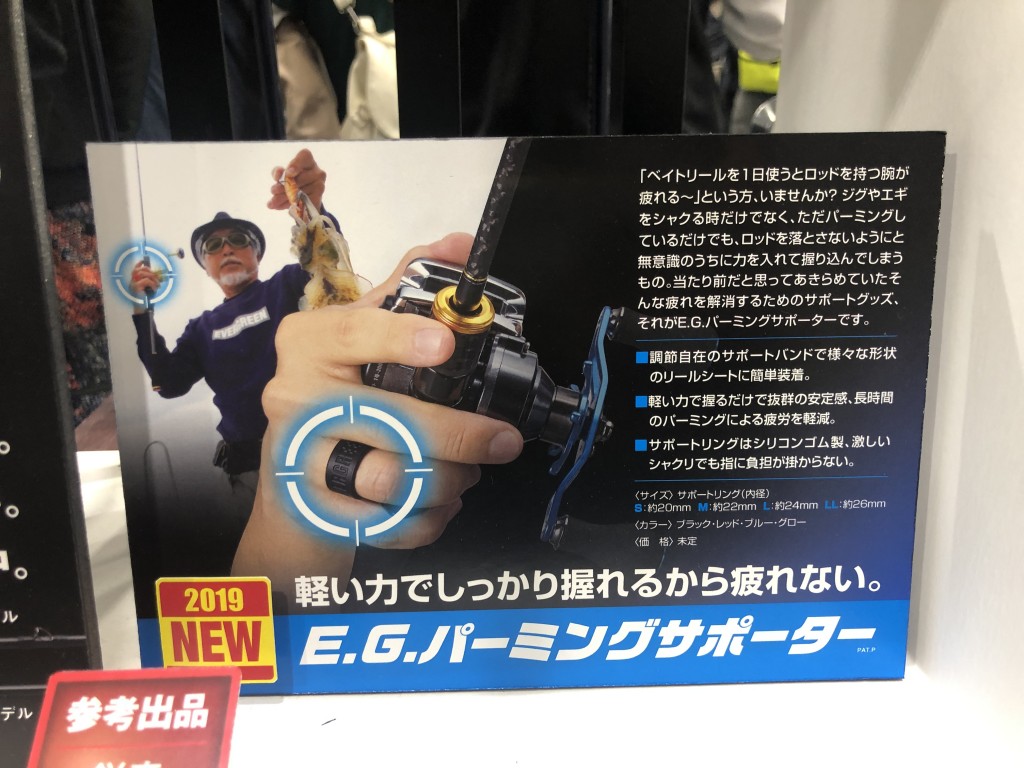 ベイトリールにE.G.パーミングサポーターを装着すれば、軽い力でしっかりとベイトリールを握れ、疲れることなく様々なアクションをこなすことができるサポートグッズ。シリコン製のサポートリングで強いシャクリでも負担が掛かりません。