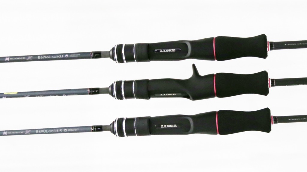 まずはブランクスにトレカT1100Gを採用。ハイ、コレです。パワーは従来モデルと同様ながら、さらに細身軽量化(シリーズ3機種は105~115g)した本体チューブラに追従性に優れたソリッドティップ搭載。