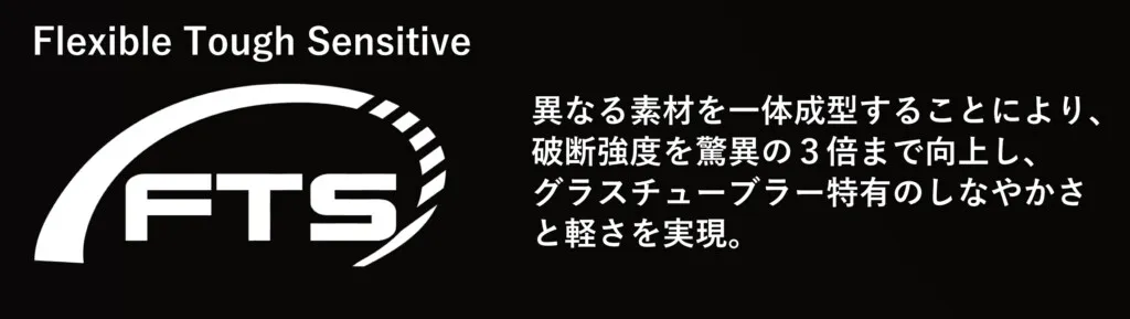 最大の特長は、ベイトモデルに搭載されている「FTS (Flexible Tough Sensitive=しなやかで強靭で高感度)」と呼ばれるティップ成型技術。ティップの外層に独自構造のグラスファイバーを巻き付け、異なる素材を一体成型。