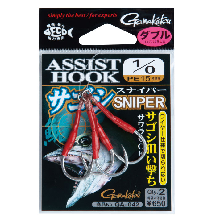 がまかつからリリースされたアシストフックサゴシスナイパーは、そんなショアジギでのサゴシ狙いにピッタリなフックですよ!