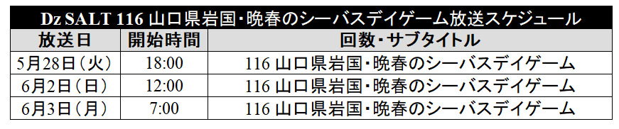 そんな釣りの一部始終がご覧いただける今回のD:z SALT(釣りビジョン)。5月末から6月にかけて何度か放送されるので是非ご覧ください! 今回の番組の詳細は釣りビジョン公式サイトのこちらのページで!