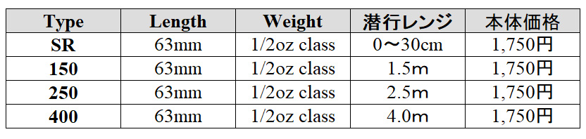 みなさんのよく行くフィールドに合わせて潜行深度とカラーを選んで現場投入してみてくださいね。