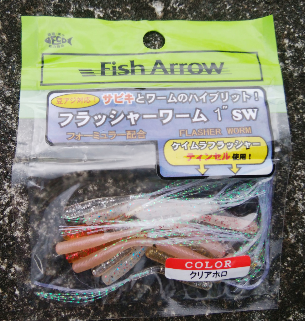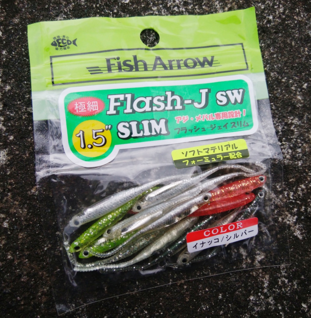 最近ではフラッシャーワーム1in【フィッシュアロー】とフラッシュJスリム1.5in【フィッシュアロー】です。