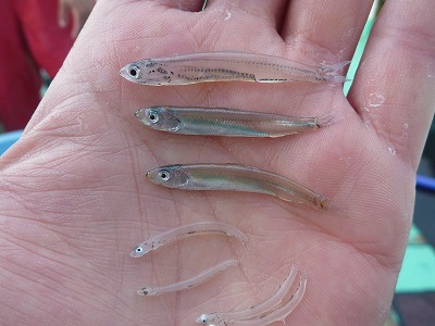 僕はフィッシュ&イートなアングラーなので、青物は釣ったら直ぐに内臓を出すのですが、弓角やルアーで釣れた青物には、形のあるイワシの様なベイトが入っている事が多いのですが、シラスワームの方で釣れた青物は、シラスみたいな小さな魚や形の分からない様なアミみたいなベイトを喰っていました。