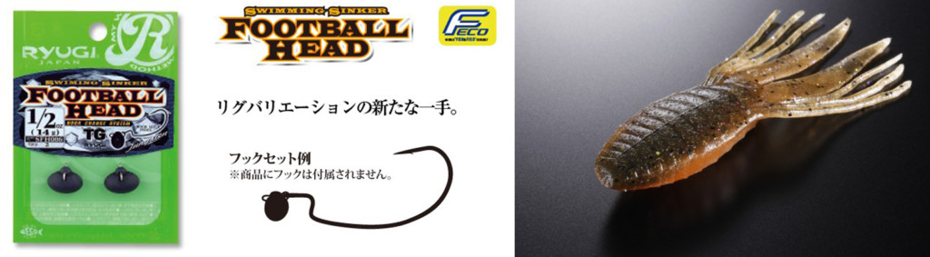 僕が良く使うフットボールジグは、「ナカタジグ」(3/8oz)と「リズムグラブ」や、「フットボールヘッド TG」(10g)と「RVドリフトクロー4in」の組み合わせ。