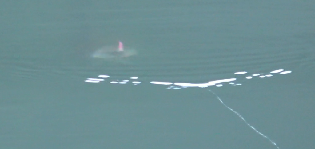 ナチュラルに泳がせているとバイトが連発! しかもそのバイトがアングラーから丸見えで、記者は現場で興奮しっぱなしでした!