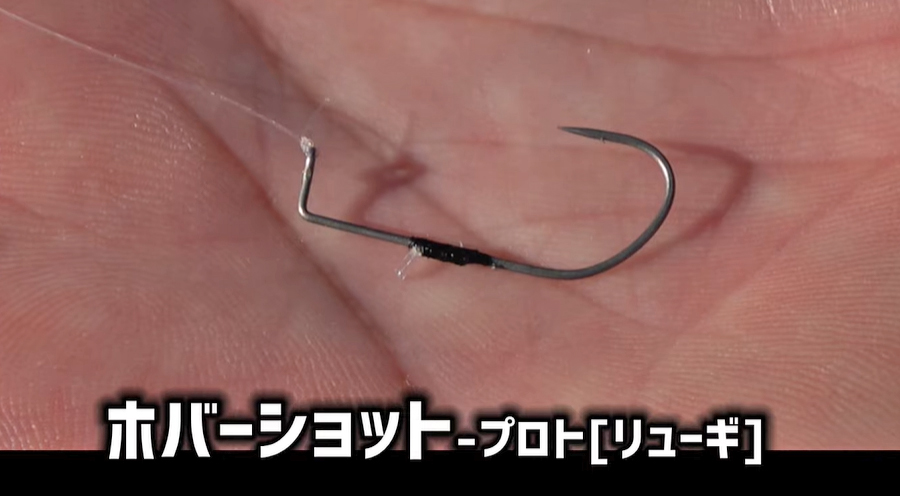フックは、リューギで開発が進んでいるという仮称「ホバーショット」というフック。ジグフック系な感じ!