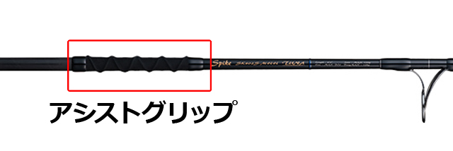 そして、大型魚とのファイトを想定するツナモデルにはアシストグリップがあり、滑らずしっかりとグリップできるのがウレしい!