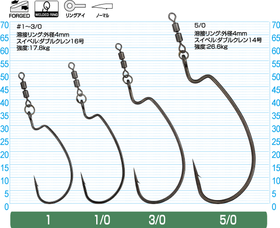 また「ジカリグ リングドフック」と同様、溶接リングも装備されているので、フックの可動域がワイドになりワームアクションがよりナチュラルになります。