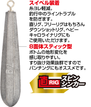 続いては、ジカリグシンカーにスイベルが内蔵された「直リグスピンシンカー」のご紹介。