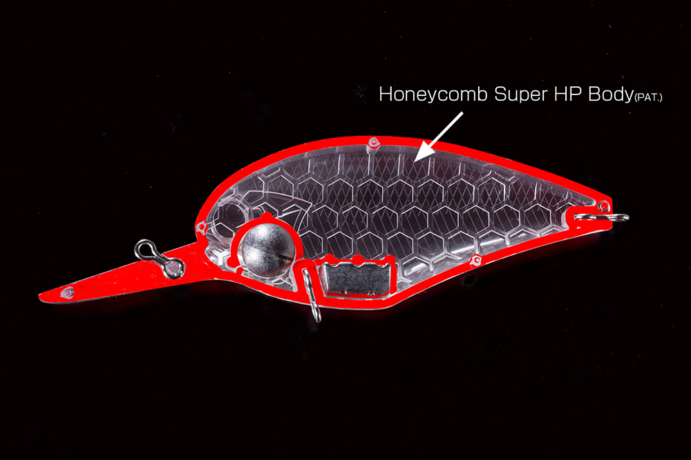 強度を維持しつつ肉厚を薄くした、”ハニカムスーパーHPボディ(PAT.)”により、一般的な固定重心タイプよりボディの軽量化と強度アップを実現しています。