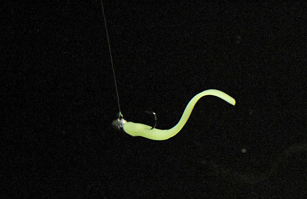 スーパージャコは形状的にはシンプルなストレート形状だけど、潮を掴んでくれるリブリブボディとピンテールがコンボされた微波動系ワーム。