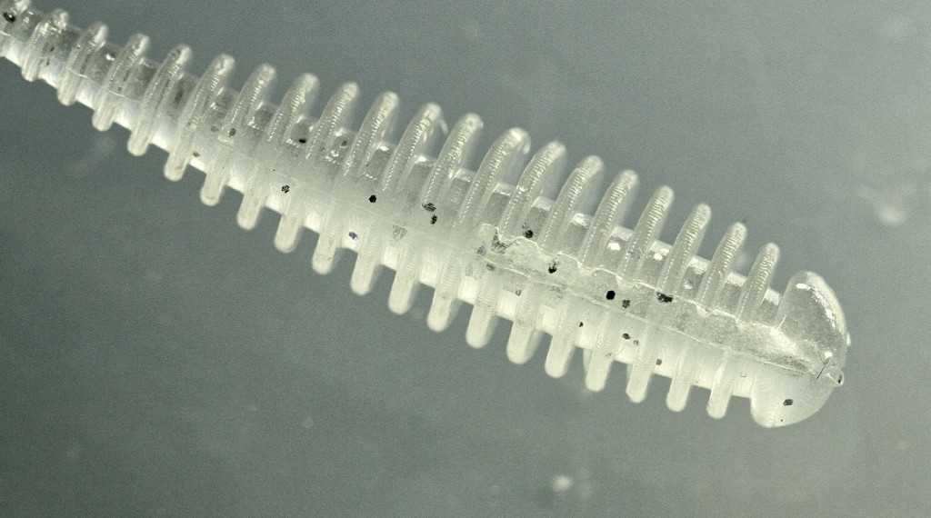 マッスルバグは太短いボディと、全身に入った深いリブが特長のワーム。