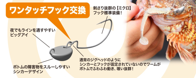 根掛かりしにくので、ボトムをガンガン攻めてカサゴやメバルを狙うのにピッタリ!