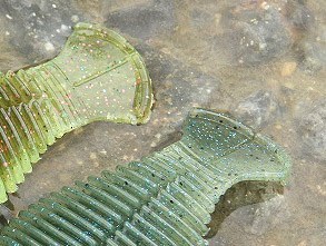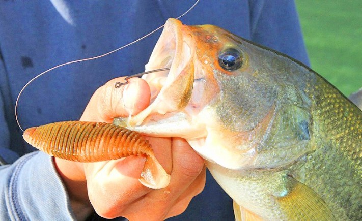 因みにリブが多いワームって、水中では生きているかのように超艶めかしくアクションしてくれて、比較的ボディが折れ曲がりやすいのでフッキングも決まりやすい印象が…。