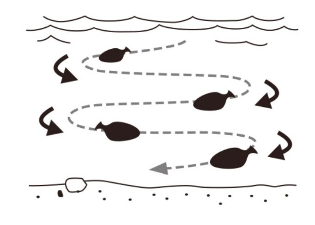 更に、細かいアクションを加えることでキビキビした首振りアクションでも誘えます。弱りながらもバスに追われて逃げているかのようなアクションを発生。