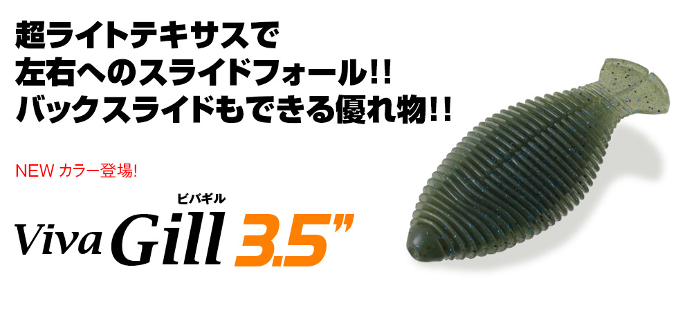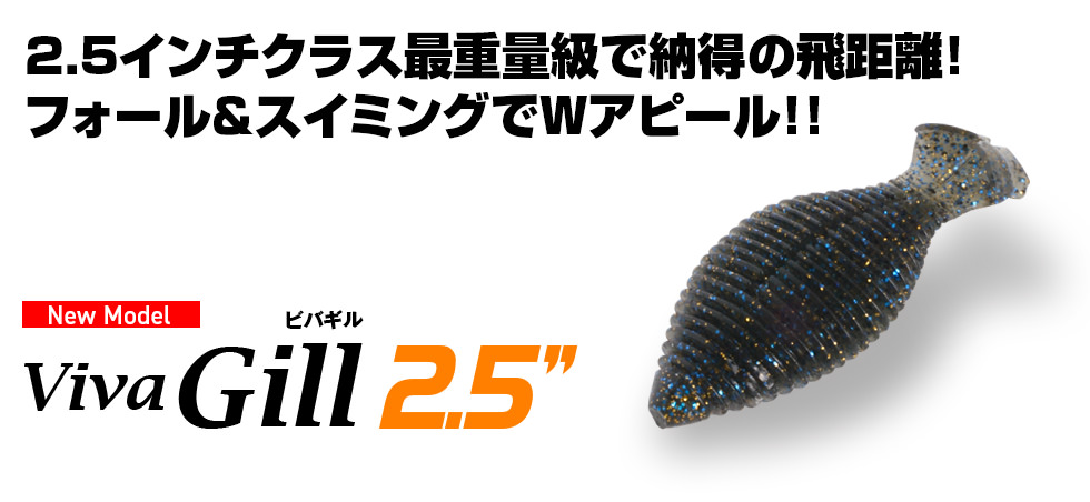 ビバが手掛けるギル系ワーム! その名も「ビバギル(3.5inch/2.5inch)」です。比較的扱いやすくコンパクトな2サイズがラインナップ。
