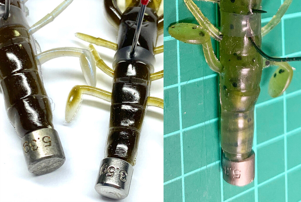 通常、3.5gのネイルシンカーを3インチ程度のスモールワームに挿入しようとすると、その長さと太さからネコリグとしてはいびつ過ぎる形なり、装着が不可能になる。