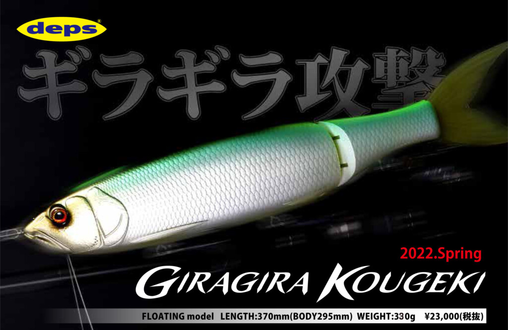 デプス奥村和正さんによって長きにわたって開発が続けられてきた、戦慄のフラッシングとダートアクションを融合したジャイアントベイト「ギラギラコウゲキ」。