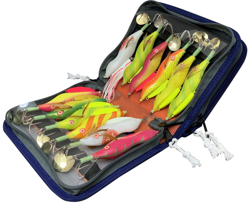 仕切りをなくすことで、様々なタコエギの大きさに対応しスペースを無駄なく使うことが可能。またワレットタイプなので、入れた分だけ広がってバッグの中でも最小限の大きさで収納できます。