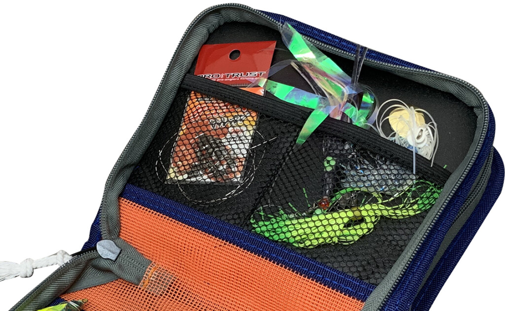 小物入れスペースがあることによって、何かとかさばるタコエギのオプションパーツもキレイにまとめて収納できます。天井には2層のメッシュを使用して、使用時はもちろん保管時にも通気性を確保。