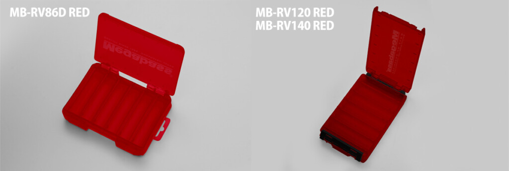 今回登場するのは、「ランカーランチボックス(リバーシブルタイプ)」。サイズは、86mmクラスのルアーに対応する「MB-RV86D RED」120mmクラスのルアーに対応する「MB-RV120 RED」140mmクラスのルアーに対応する「MB-RV140 RED」の3種類。1つ1つ収納スペースが区切られているのでルアーが絡まりにくく、スッキリとした収納が可能です。