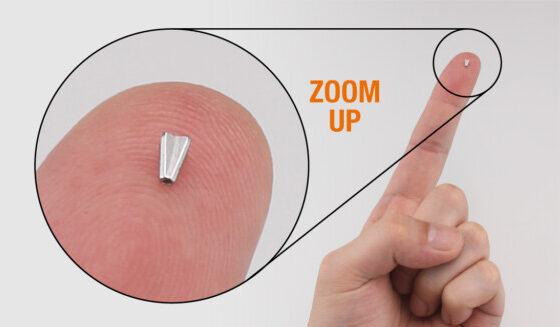 これだけ小さいネイルシンカーだと、セッティングが難しいんじゃ? と感じますが、付属の専用スルーネイルピンを使用することで、まっすぐ簡単に装着できます。