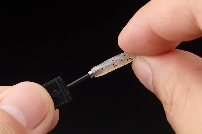 マイクロベイトパターンで使用される1in程度のワームや2~3inの細いストレートワーム、ホバストにも対応します。