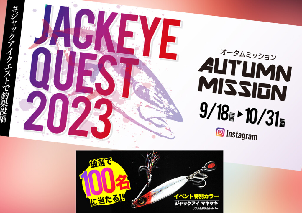【#ジャックアイクエスト】ジャックアイシリーズのインスタ連動キャンペーンイベント開催中【限定カラーのジャックアイマキマキが抽選で100名に当たる】 2023年10月06日 イベントネタソルトウォーター初心者青物ジギングオフショアルアー