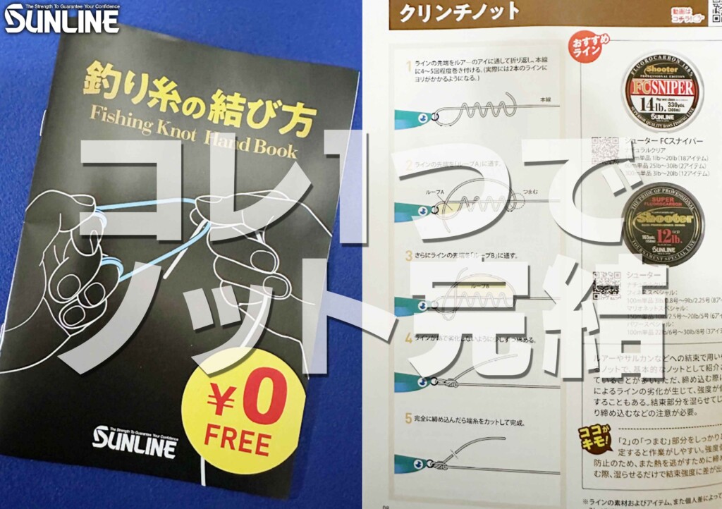 【コレ1つでノット完結】何と無料!釣具店で貰えるサンラインの「釣り糸の結び方 フィッシングノットハンドブック」が欲しスギるヤツ! 2024年07月30日 動画ネタハウツーバスフィッシングエギングアジングメバリングチヌタチウオシーバスソルトウォータータイラバトーナメントロックフィッシュ初心者ジギングオフショアルアーラインナマズフラットフィッシュトラウト