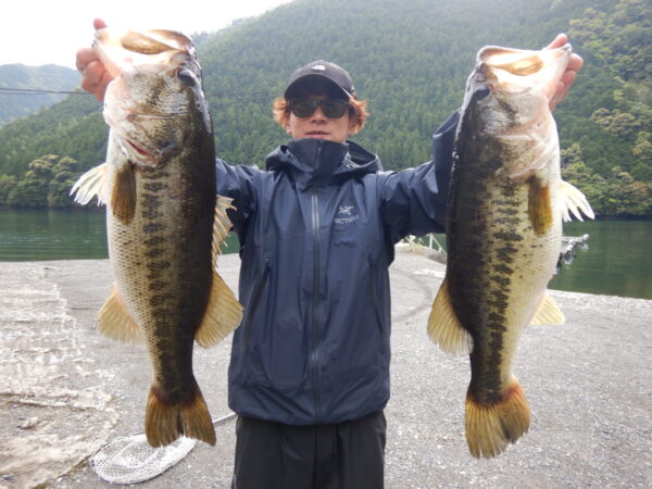 妹尾さん、55.0㎝(2,770g)、サカマタシャッドHD、本流。53.0㎝(1,970g)、サカマタシャッドHD、大又川。