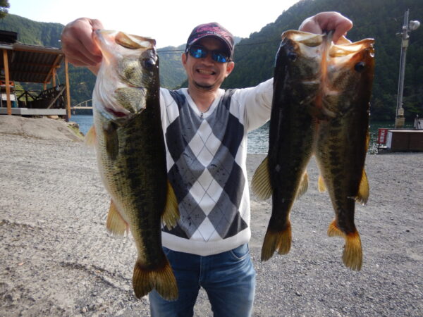 塩崎さん、52.0㎝(1,905g)、フリックシェイクDS、ダムサイト。 47.0㎝(1,365g)、46.5㎝(1,160g)、ダンベルクラブ、大又川黒潮ワンド。