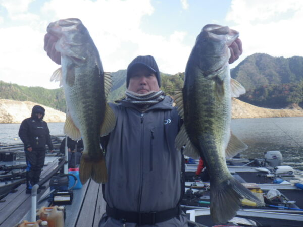 牧戸さん、44.0㎝(1,115g)、44.0㎝(975g)、ダイソーワーム、旧発電所跡付近。