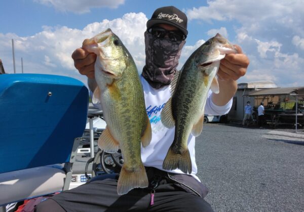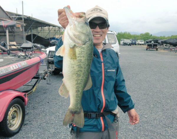 明日のチャプター琵琶湖の練習で釣れてしまった中西さん!